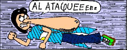 su nariz, para así golpear, tomando fuerza con giros, a